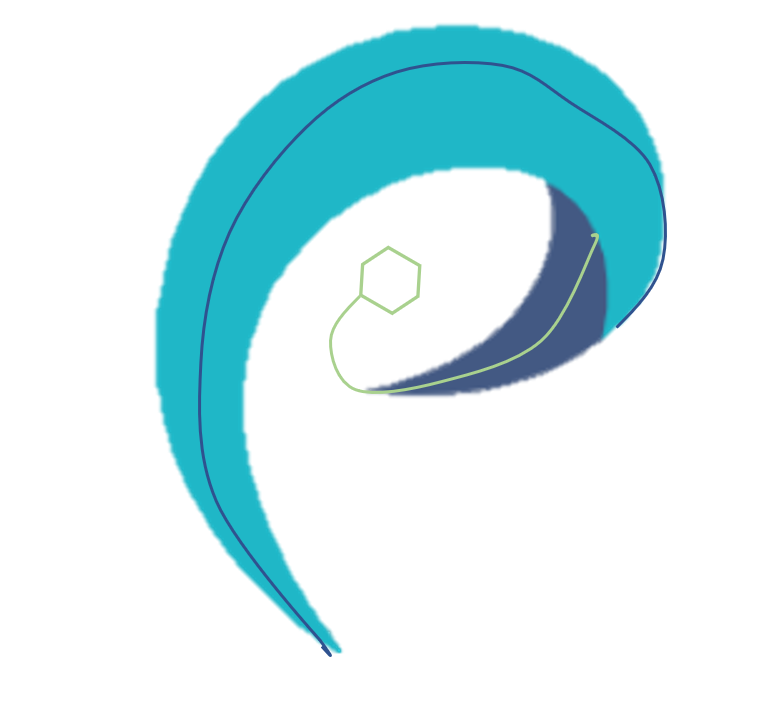 上面那個是個扭曲的棱形,那個線條是一個棱邊。三維立體的感覺。下面有個類似于變形的六元環(huán)結構,連一條鏈出去一直延伸到那個棱形結構里面。這個也可以理解成眼睛,也可以看成是P,也可以是C,也可以是A。PAC都能表達出來,另外,也可以像一個同步輻射,中間是儲能環(huán),外面是線站。